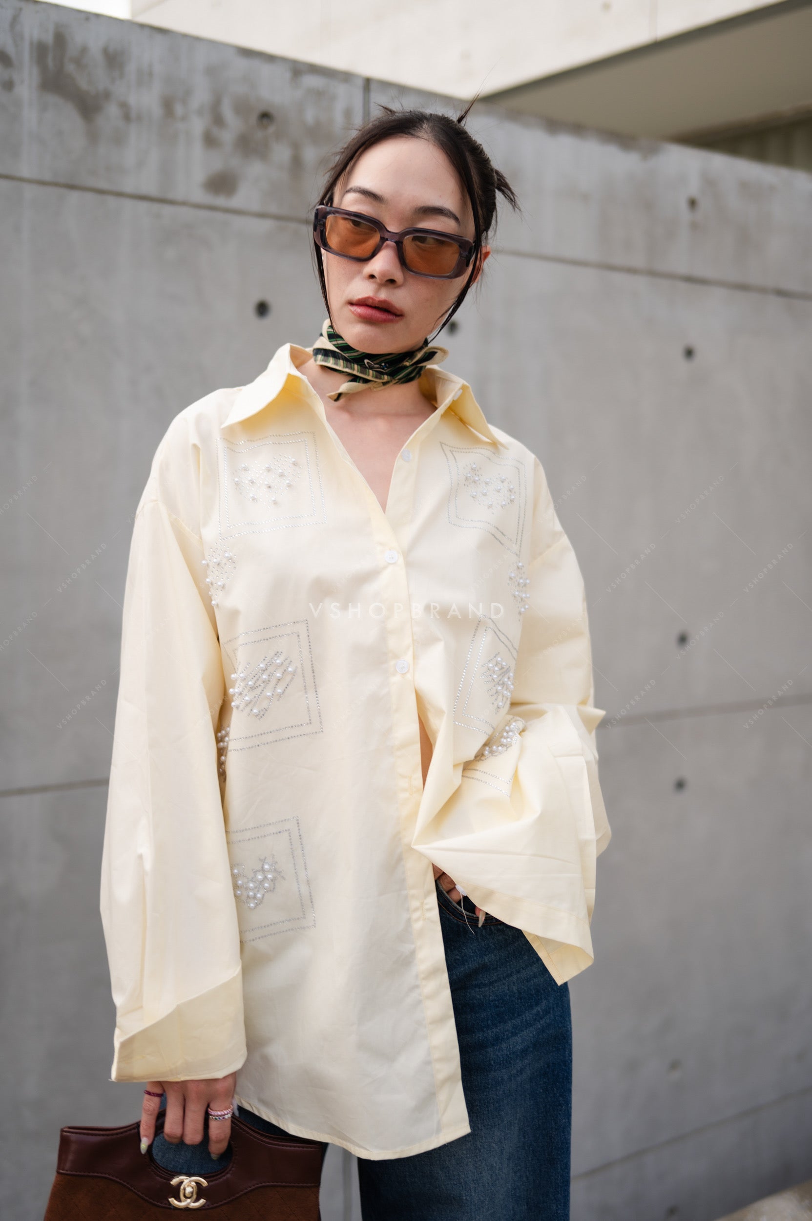 A shirt made in a balanced out combination of multiple embroidered patterns and pearl embroidery on a cotton base making it oh sooo comfortable and super Trendy!