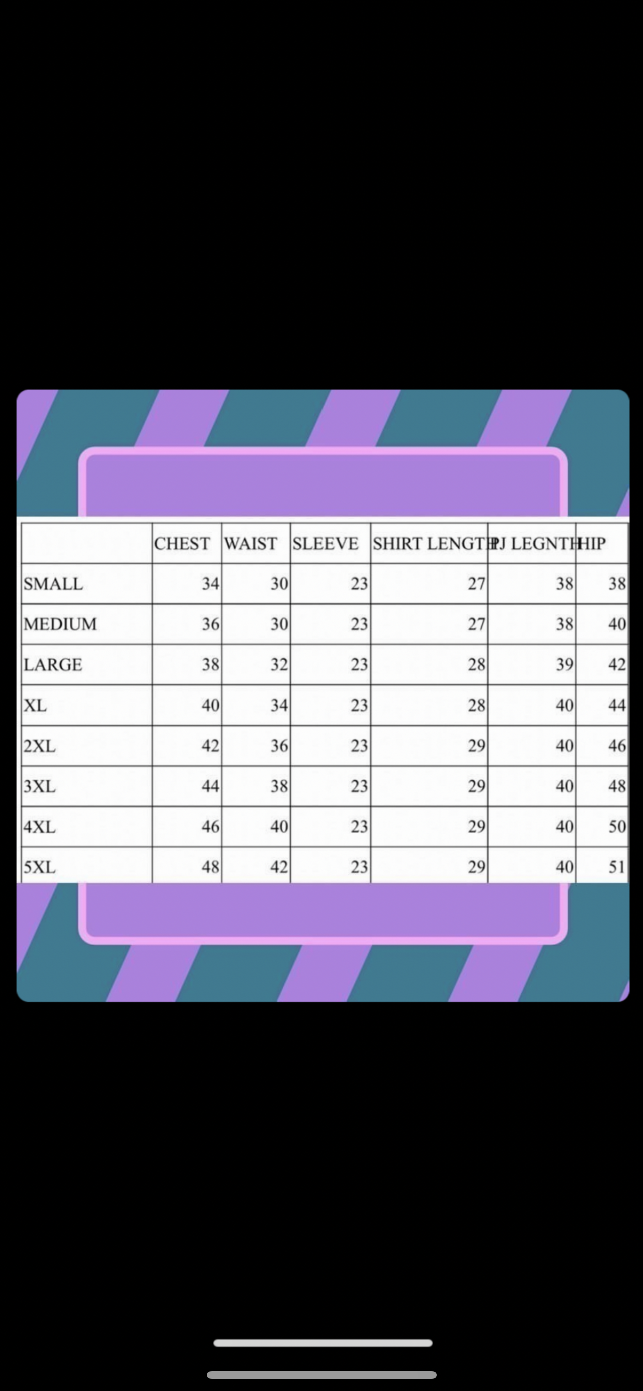 Please refer to the measurement chart