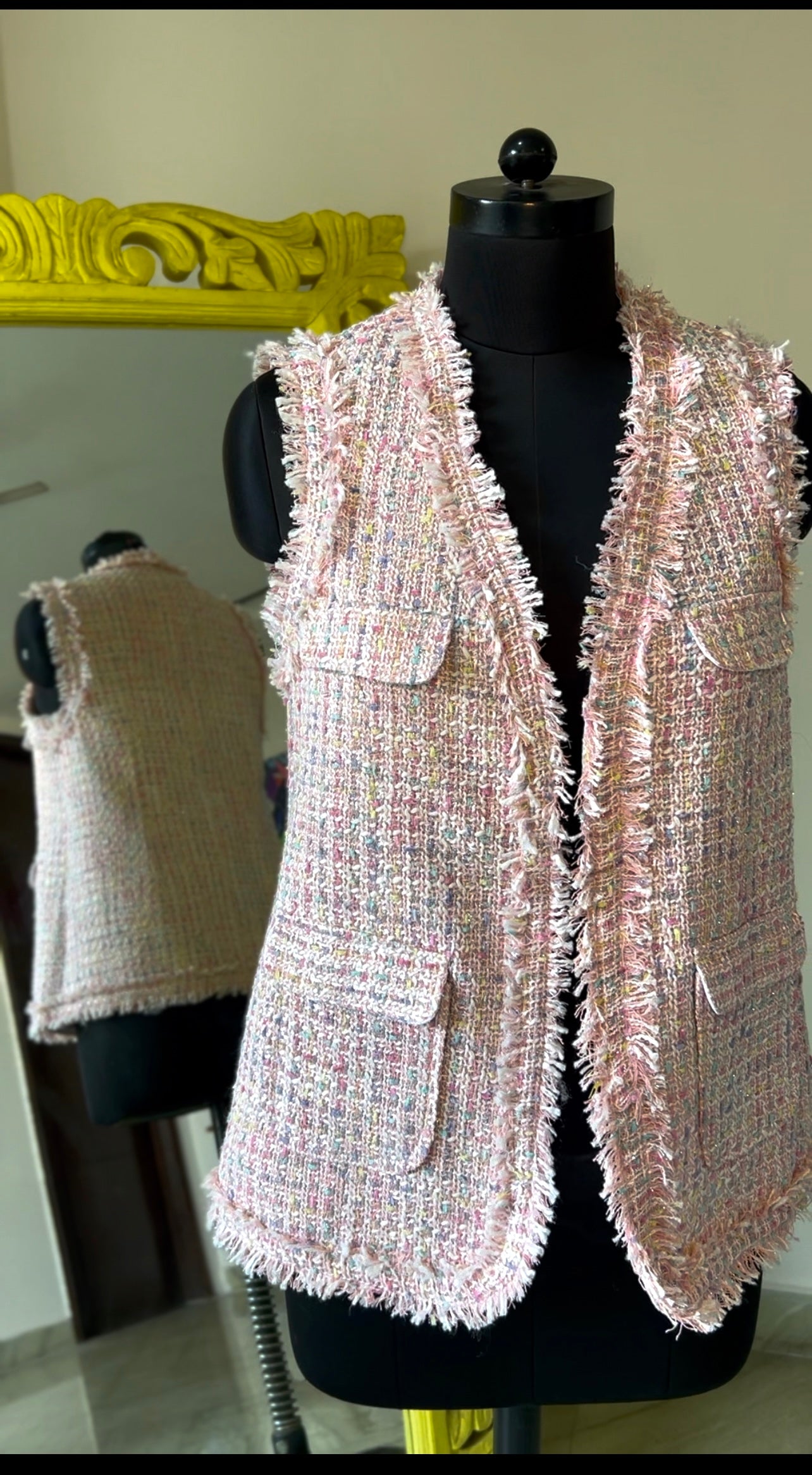A beautiful button less structured tweed jacket for your everyday essential and taking you from day to night effortlessly.